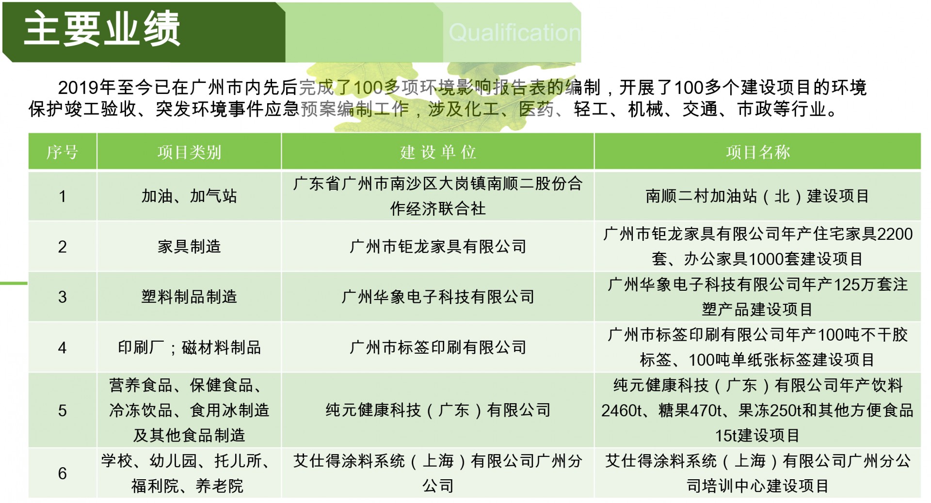 廣州市中揚(yáng)環(huán)保工程有限公司成立于2015年,專注于項(xiàng)目環(huán)評(píng)、生態(tài)調(diào)查、規(guī)劃環(huán)評(píng)、場(chǎng)地調(diào)查、項(xiàng)目竣工環(huán)保驗(yàn)收、突發(fā)環(huán)境事件應(yīng)急預(yù)案及風(fēng)險(xiǎn)評(píng)估、排污許可證申報(bào)、生態(tài)調(diào)查報(bào)告、環(huán)境監(jiān)理、環(huán)境監(jiān)測(cè)、水土保持方案編制、水土保持監(jiān)測(cè)與驗(yàn)收、環(huán)保技術(shù)顧問(wèn)及環(huán)保管家服務(wù);廢氣、廢水治理工程;廢水處理站運(yùn)營(yíng)管養(yǎng)服務(wù)。